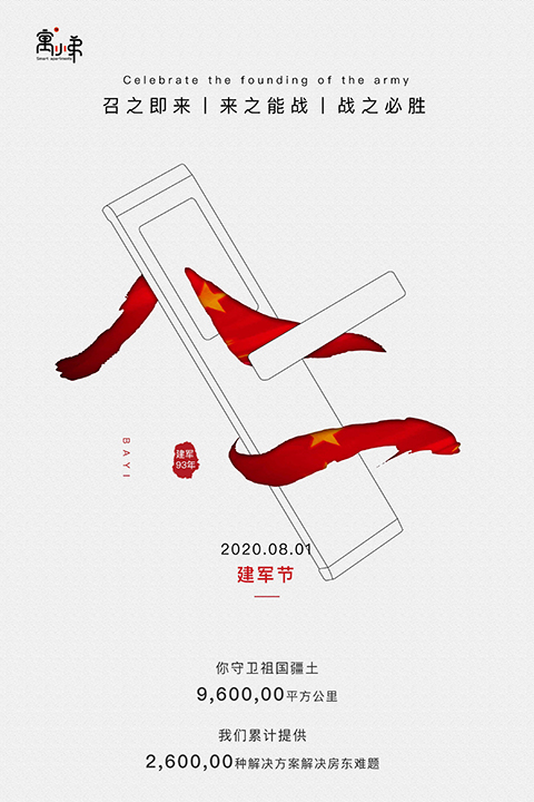 以上就是【 八一建軍來臨之際,寓小弟祝大家建軍節快樂!!!】http://www.boyjt.cn/xwzx/gsdt/127.html的相關內容, 文本由寓小弟智能鎖整理發布,如需轉載,請帶上本站鏈接。
